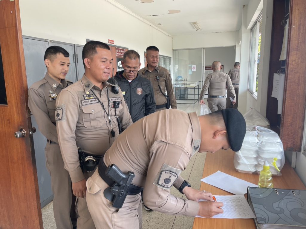 เวลา 12.00 น. มอบอาหารกลางวันให้แก่ข้าราชการตำรวจ เพื่อเป็นขวัญและกําลังใจในการปฏิบัติหน้าที่
