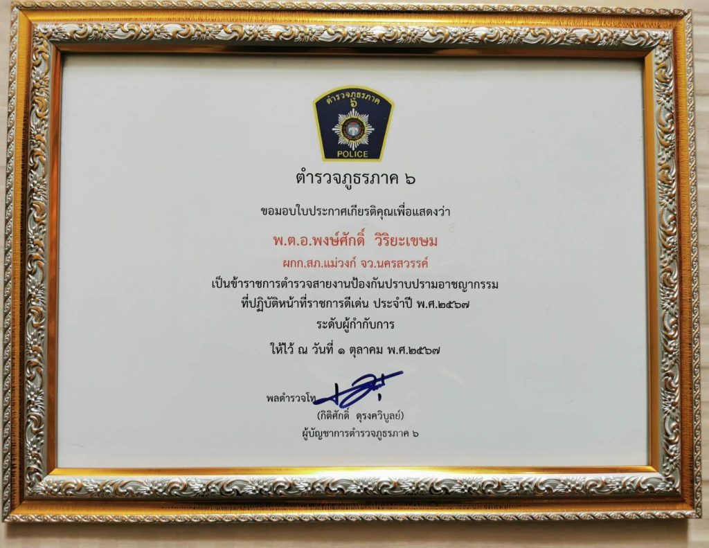 วันที่ (17 ต.ค.67) เวลา 09.00 น. พ.ต.อ.พงษ์ศักดิ์ วิริยะเขษม ผู้กำกับการสถานีตำรวจภูธรแม่วงก์ เข้ารับใบประกาศเกียรติคุณ งานป้องกันปราบปรามอาชญากรรมดีเด่น ประจำปี พ.ศ.2567 ระดับผู้กำกับการ ของผู้บัญชาการตำรวจภูธรภาค 6 จาก พล.ต.ต.ระวีพรรษอมรมุนีพงศ์ รอง ผู้บัญชาการตำรวจภูธรภาค 6 รักษาราชการแทนผู้บังคับการตำรวจภูธรจังหวัดนครสวรรค์ ในวันตำรวจ ณ ตำรวจภูธรจังหวัดนครสวรรค์