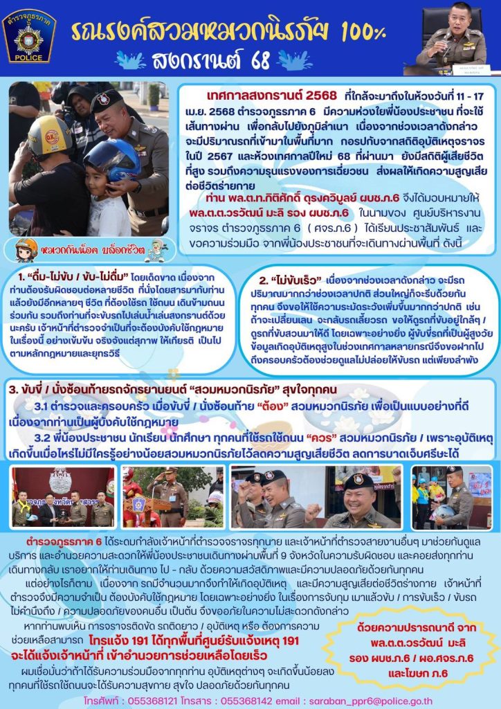 #สงกรานต์ปลอดภัย 68 4 เมษายน 2568 โดย maewong / ข่าวประชาสัมพันธ์,ข่าวกิจกรรม,ข่าวประชาสัมพันธ์,ข่าวประชาสัมพันธ์,ข่าวฝากประชาสัมพันธ์,ข่าวภารกิจผู้บังคับบัญชา Facebook iconFacebookTwitter iconTwitterLINE iconLine