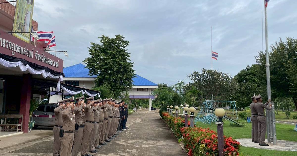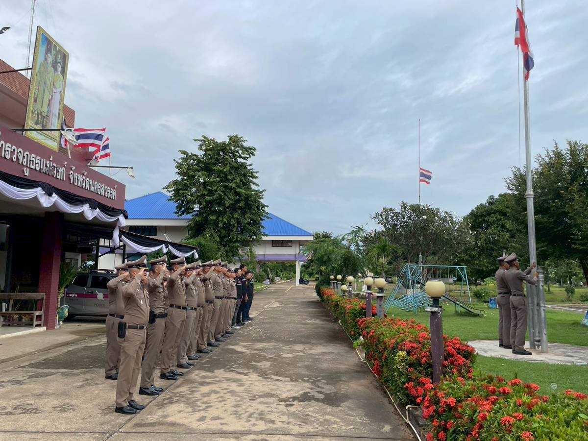 เคารพธงชาติ วันที่ 18 พฤศจิกายน 2568 18 พฤศจิกายน 2568 โดย maewong / ข่าวประชาสัมพันธ์,ข่าวกิจกรรม วันที่ 18 พฤศจิกายน 2568 เวลา 08.00 น. พ.ต.อ.พงษ์ศักดิ์ วิริยะเขษม ผู้กำกับการสถานีตำรวจภูธรแม่วงก์นำข้าราชการตำรวจร่วมกิจกรรมหน้าเสาธงชาติ ดังนี้ • เคารพธงชาติ • ยืนสงบนิ่งถวายความอาลัยแด่ สมเด็จพระนางเจ้าสิริกิติ์ พระบรมราชินีนาถ พระบรมราชชนนีพันปีหลวง • บทปลงใจ • คำสัตย์ปฏิญาณ • อุดมคติตำรวจ • พันธกิจ• ตรวจเครื่องแบบและทรงผมข้าราชการตำรวจ Facebook iconFacebookTwitter iconTwitterLINE iconLine