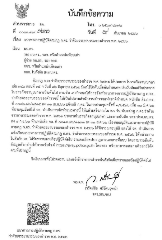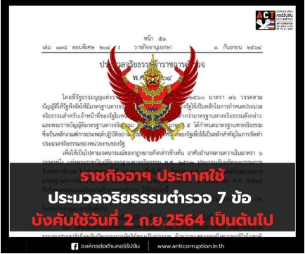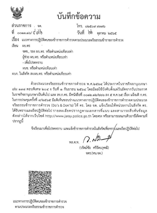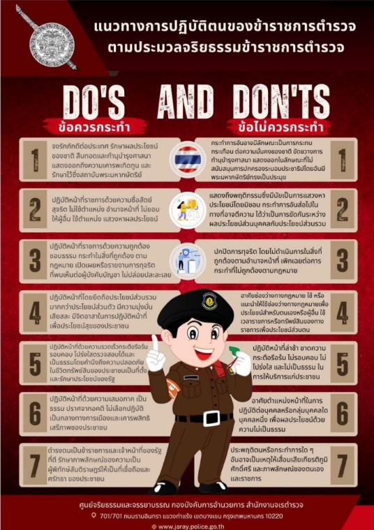 การจัดทำคู่มือหรือแนวทางการปฏิบัติตามมาตรฐานทางจริยธรรม ของสถานีตำรวจ